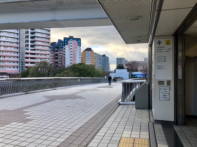 集合、スタート地点は、ポートライナーアイランド北口駅の前です。