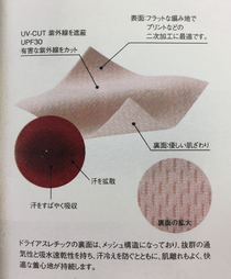UV(紫外線遮蔽)機能やUPF30(紫外線防止指数)といった優れた機能。